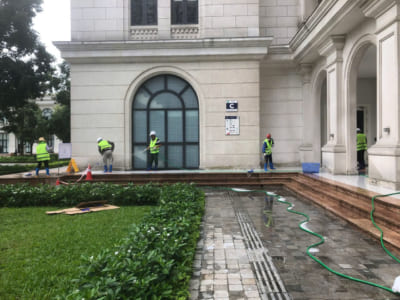 _ Thi công chống trượt ram dốc tòa nhà.