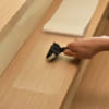 Bước 2: Bóc miếng dán đằng sau và đặt vào các vị trí đã đánh dấu, dán tới đâu dùng con lăn và gạt nhựa lăn tới đó để đẩy bọt khí ra ngoài